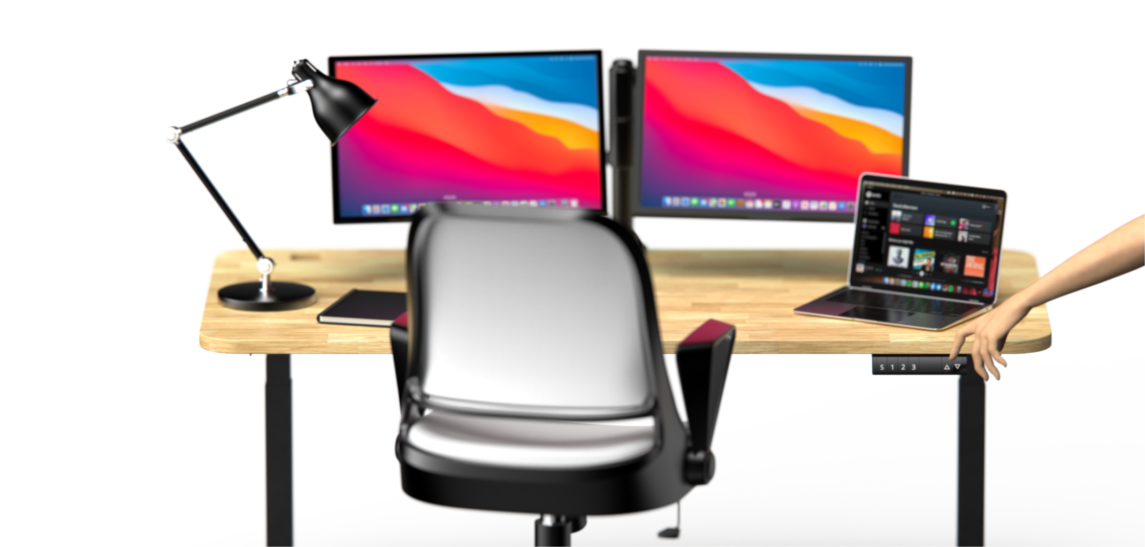 Restore your body and mind balance with just a touch of a button. Hover will rest sturdily at the level that works best for your height, back and posture. Working at your desk will no longer put your body at risk.